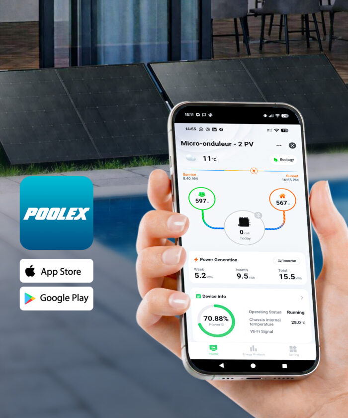 Sistema solar Plug & Play diseñado para reducir el consumo eléctrico de los equipos de piscina sin necesidad de instalación.
